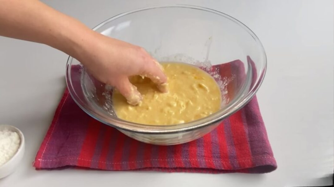 Üzerine azar azar un, kabartma tozu ve vanilya ekleyerek yumuşak bir hamur yoğuralım. Hamurun üzerini kapatıp buzdolabında dinlenmeye bırakalım.