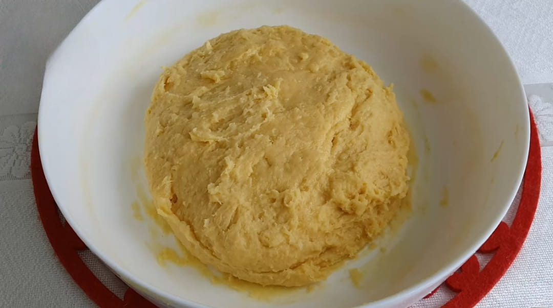 Soğumuş hamurun üzerine nişasta, irmik, vanilya ve yumurtaları teker teker ekleyerek ele hafifçe yapışan kıvamlı bir hamur elde edelim.