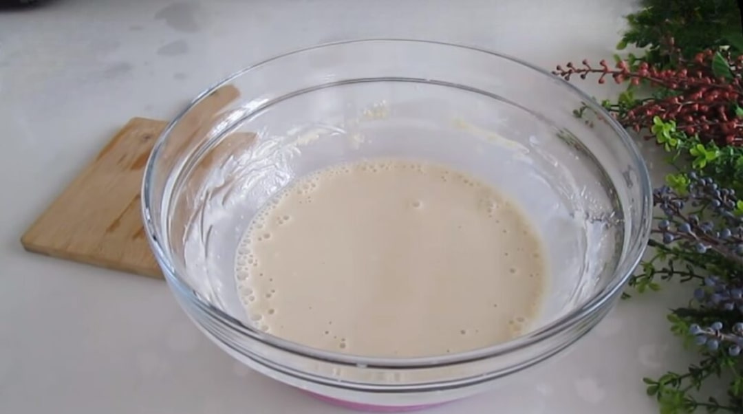 Yoğurma kabına süt, su, maya ve şekeri alıp güzelce karıştıralım. Ardından bir su bardağı un ilave edelim ve tekrar karıştıralım. Kabın üzerini kapatarak 10 dakika kadar dinlenmeye bırakalım.