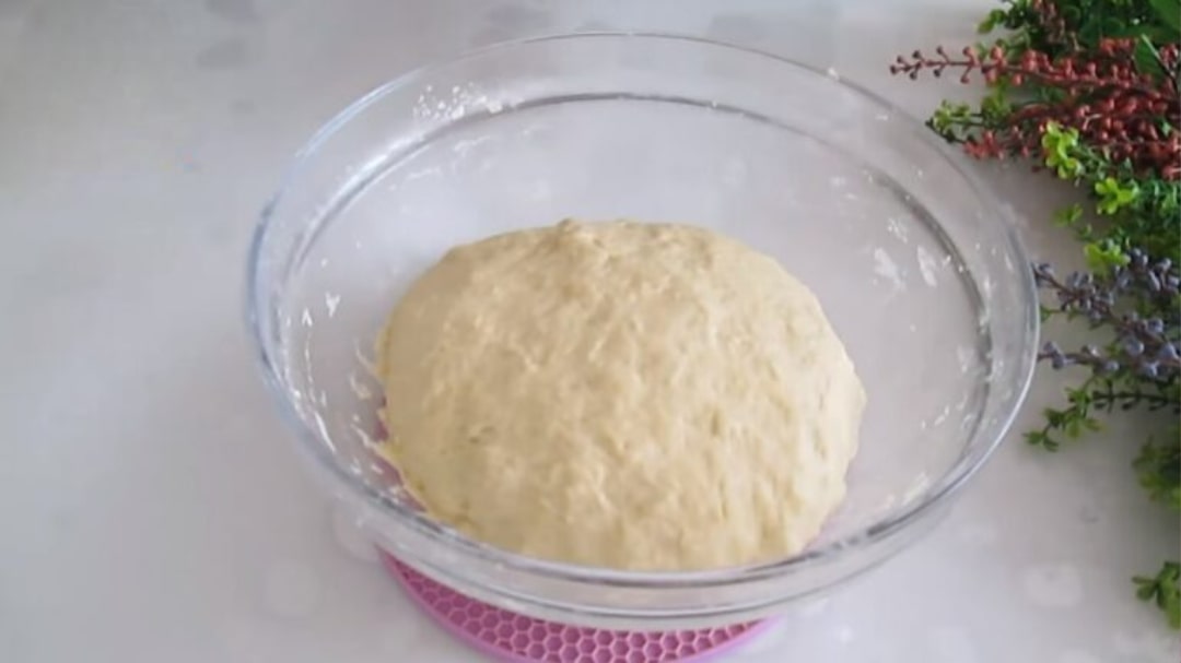 Süre dolduğunda karışımı tekrar harmanlayalım ve içerisine yumurta ile sıvı yağı ekleyip iyice karıştıralım. Ardından, azar azar un ve tuzu ekleyerek yumuşak bir hamur yoğuralım. Hamurun üzerini kapatarak 30 dakika dinlenmeye bırakalım.
