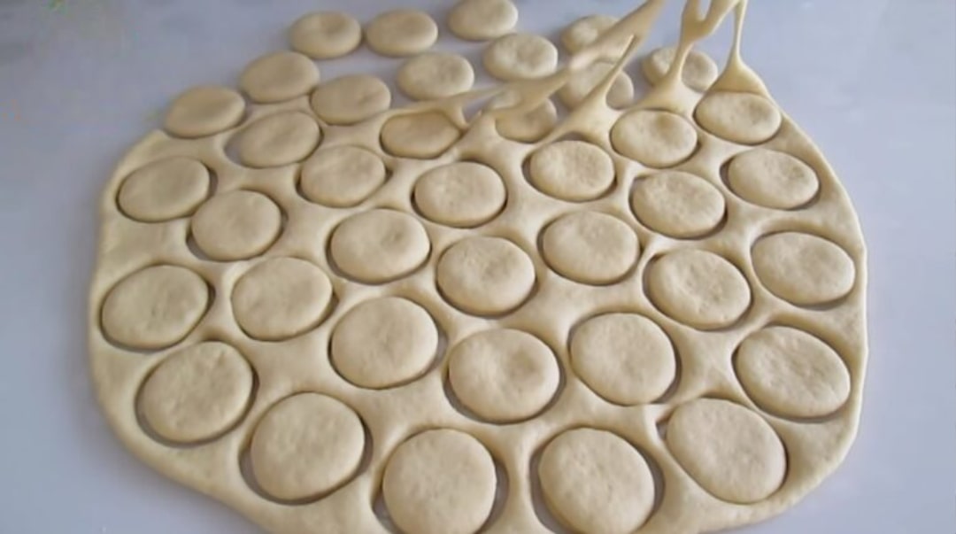 Mayalanan hamurun havasını çıkardıktan sonra merdane ile açalım. Bir bardağın ağız kısmını kullanarak hamuru bastırıp keselim ve şekiller oluşturalım.