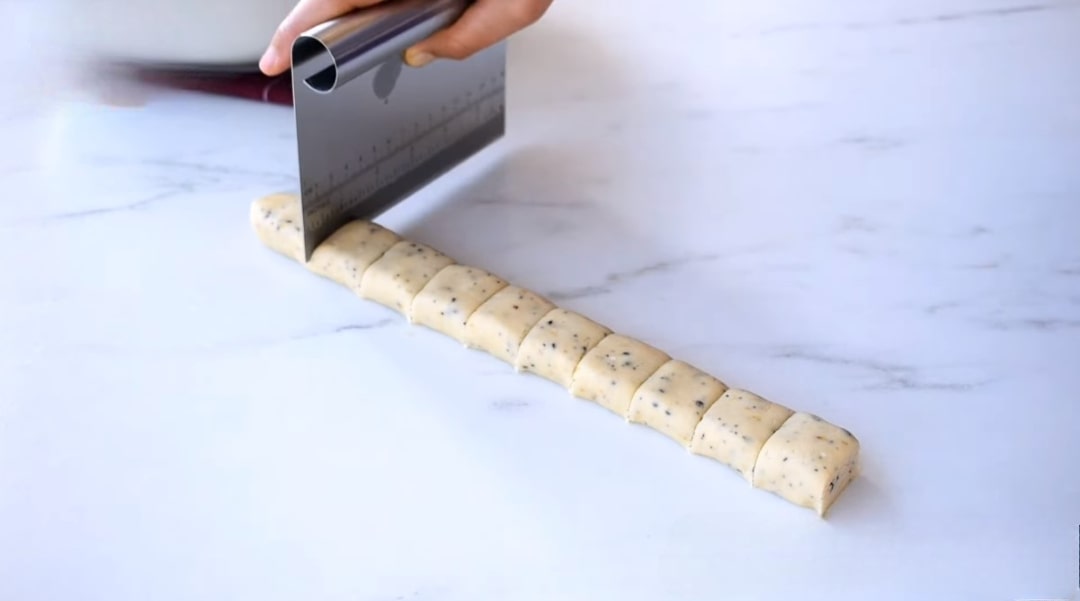 Hamurdan irice parçalar koparıp silindir şeklini verelim. Üzerine bastırıp yassı bir form verip mutfak aparatı ile hamuru keselim.