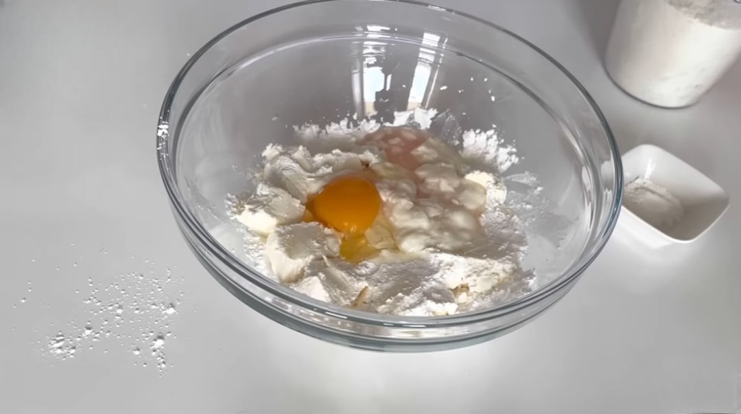 Yoğurma kabına oda sıcaklığında beklemiş katı yağı ve pudra şekerini ekleyerek güzelce karıştıralım. Ardından üzerine yumurtayı, susuz yoğurdu ve sirkeyi ilave edip karıştırma işlemine devam edelim.