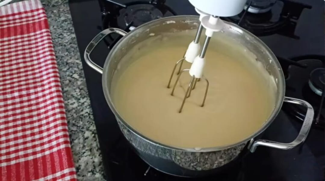 Üzerine süt, şeker ve yumurta sarısını ekleyerek sürekli karıştırarak kaynamaya başlayıp kıvam alana kadar pişirelim. Ardından mikserle tamamen pürüzsüz bir doku elde edene kadar çırpalım.