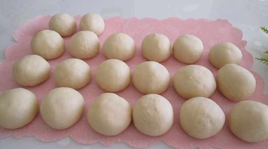 Mayalanmış hamurun havasını alıp 20 eşit bezeye ayıralım.